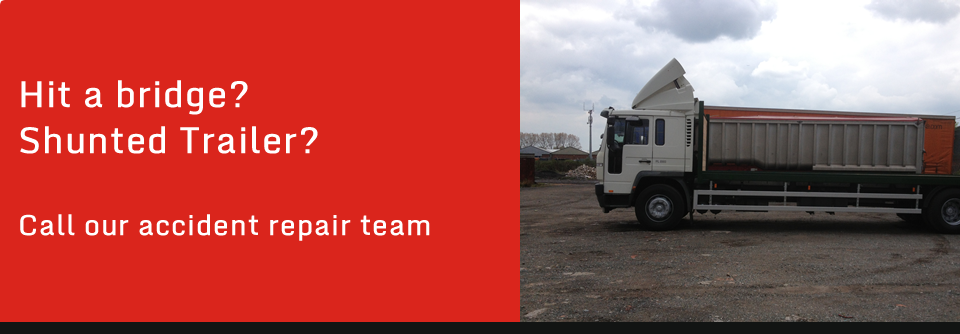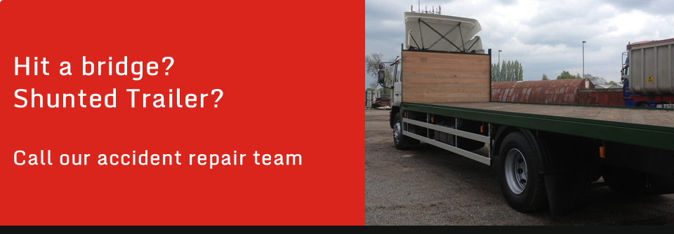 Damaged your commercial trailer? Tautliners UK offer 24 hr call out. Our accident repair service will assess and repair damage to trailer roofs, repair bent corner pillars, replace rear doors and perform welding and other repairs. Call us today.